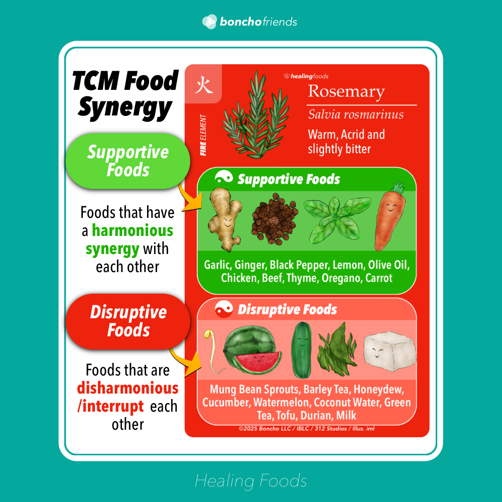 Example: Ginger (warming) + Jujube (nourishing) = strengthens digestion and Qi.